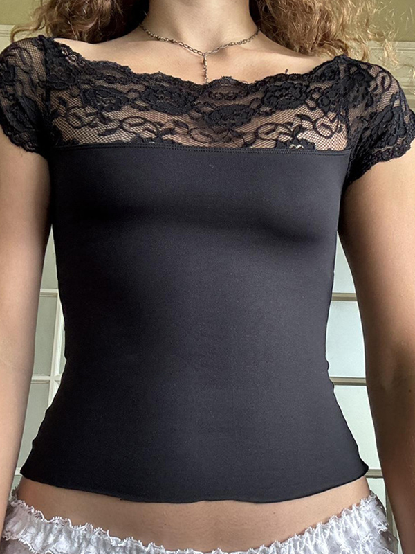 Camiseta de manga corta con encaje