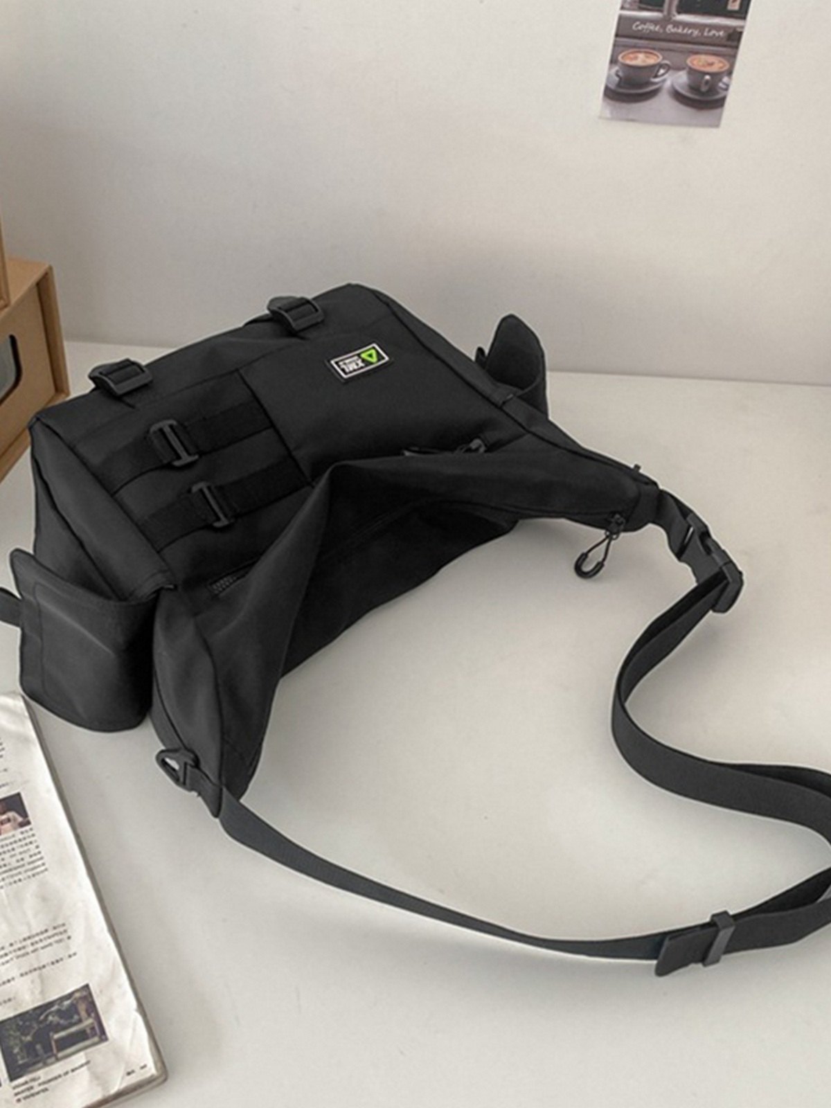 Diseño : Cuenta con detalles de múltiples correas, con bolsillos funcionales y diseño de cierre de bragueta con cremallera.