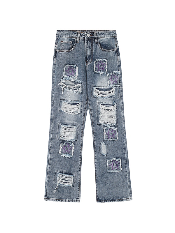 Diseño único: El diseño lavado combinado con el bordado de estrellas moradas ofrece una combinación única de estilo vintage y urbano, lo que lo convierte en un jeans destacado en cualquier guardarropa.