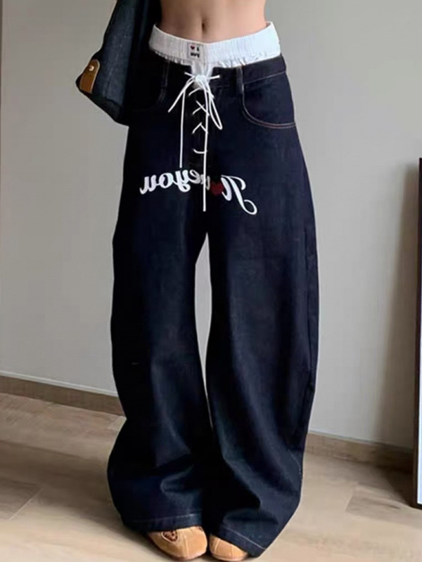 Shorts vaqueros con estampados de letras de colores